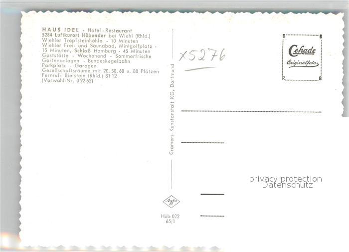 42978812 Huebender Hotel Restaurant IdelSchankraum Gesellschaftszimmer Empfang Lese- und Schreibezimmer postalisch nicht gelaufen Erhaltung siehe scans [AndreD76] KatCode: 11110005374048