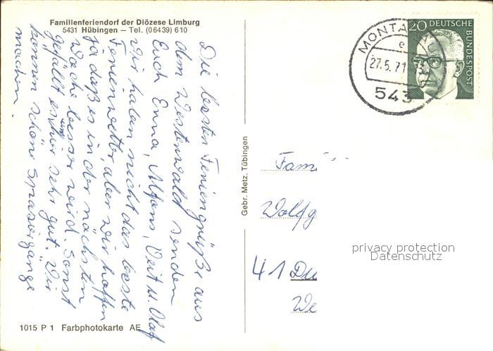 72182481 alte Postkarte Huebingen Familienferiendorf Dioezese Limburg postalisch gelaufen Erhaltung siehe scans KatCode: 11110007143036