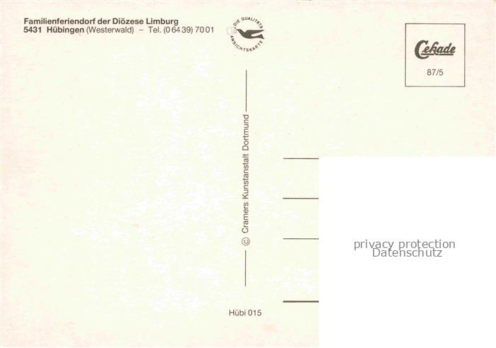 74021876 Huebingen Westerwaldkreis Familienferiendorf der Dioezese Limburg postalisch nicht gelaufen Erhaltung siehe scans [FriedD77] KatCode: 11110007143036