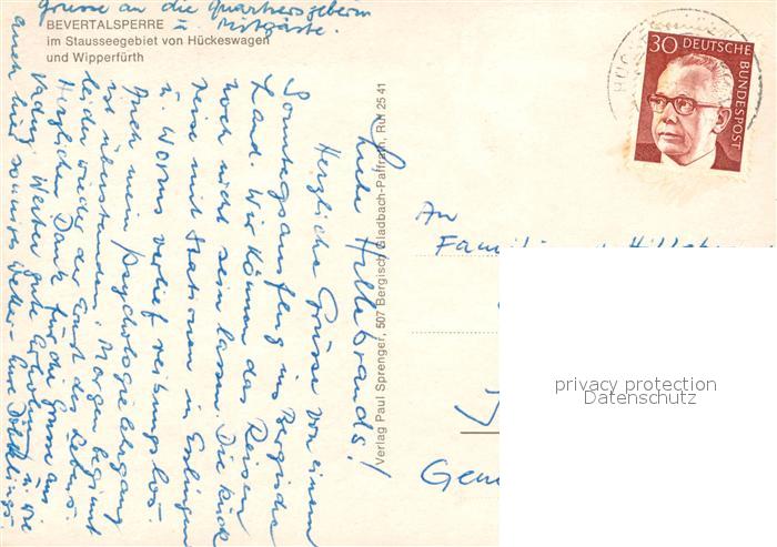 73310047 alte Postkarte Hueckeswagen Bevertalsperre Stausee Campingplatz Hotel Gaststaette Ausflugsziel Bergisches Land postalisch gelaufen Erhaltung siehe scans [FriedD77] KatCode: 11110005374016