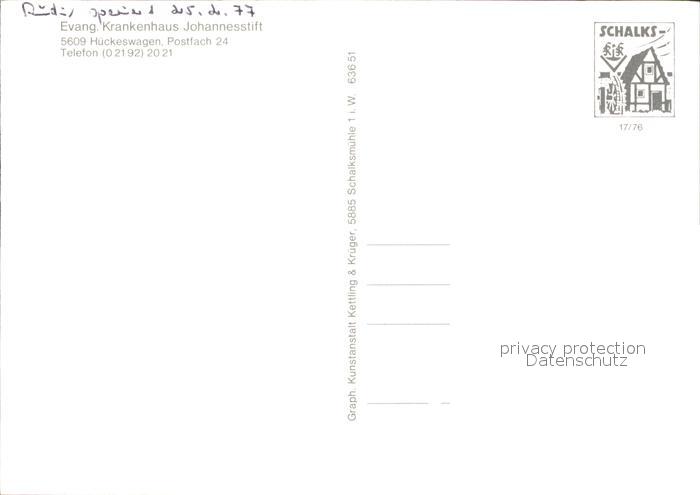 71939953 Hueckeswagen Ev Krankenhaus Johannesstift postalisch nicht gelaufen Erhaltung siehe scans KatCode: 11110005374016