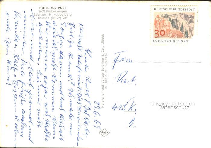 72204223 Hueckeswagen Hotel zur Post postalisch nicht gelaufen Erhaltung siehe scans KatCode: 11110005374016