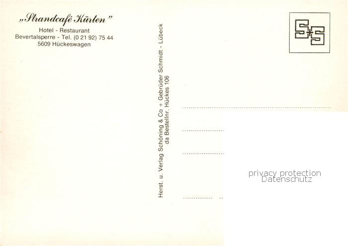 73845839 Hueckeswagen StrandCafe Kuerten Hotel Restaurant postalisch nicht gelaufen Erhaltung siehe scans [FriedD77] KatCode: 11110005374016