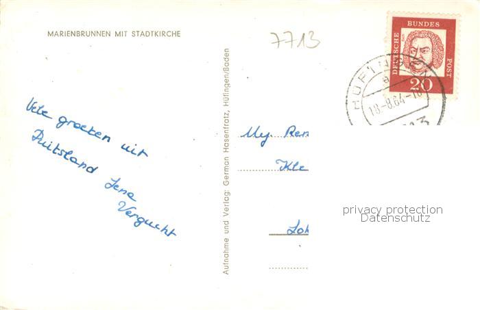73780022 alte Postkarte Huefingen Marienbrunnen mit Stadtkirche postalisch gelaufen Erhaltung siehe scans [WerneD78] KatCode: 11110008326027
