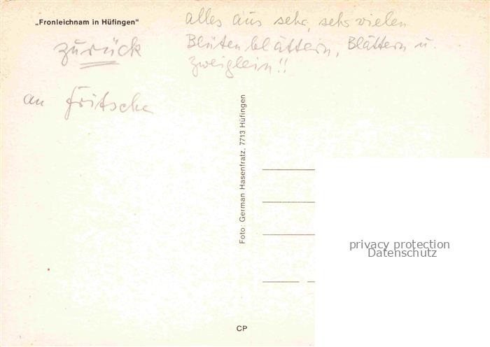 74043752 Huefingen Schwarzwald-Baar-Kreis BW Huefinger Blumenteppiche Fronleichnam Prozession Trachten postalisch nicht gelaufen Erhaltung siehe scans [FriedD77] Frie Katcode 11110008326027