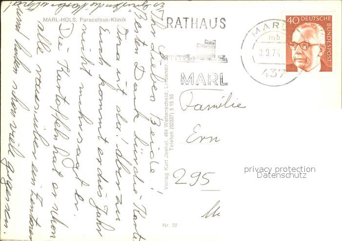 72111861 alte Postkarte Huels Marl Paracelsius-Klinik postalisch gelaufen Erhaltung siehe scans KatCode: 11110005562024