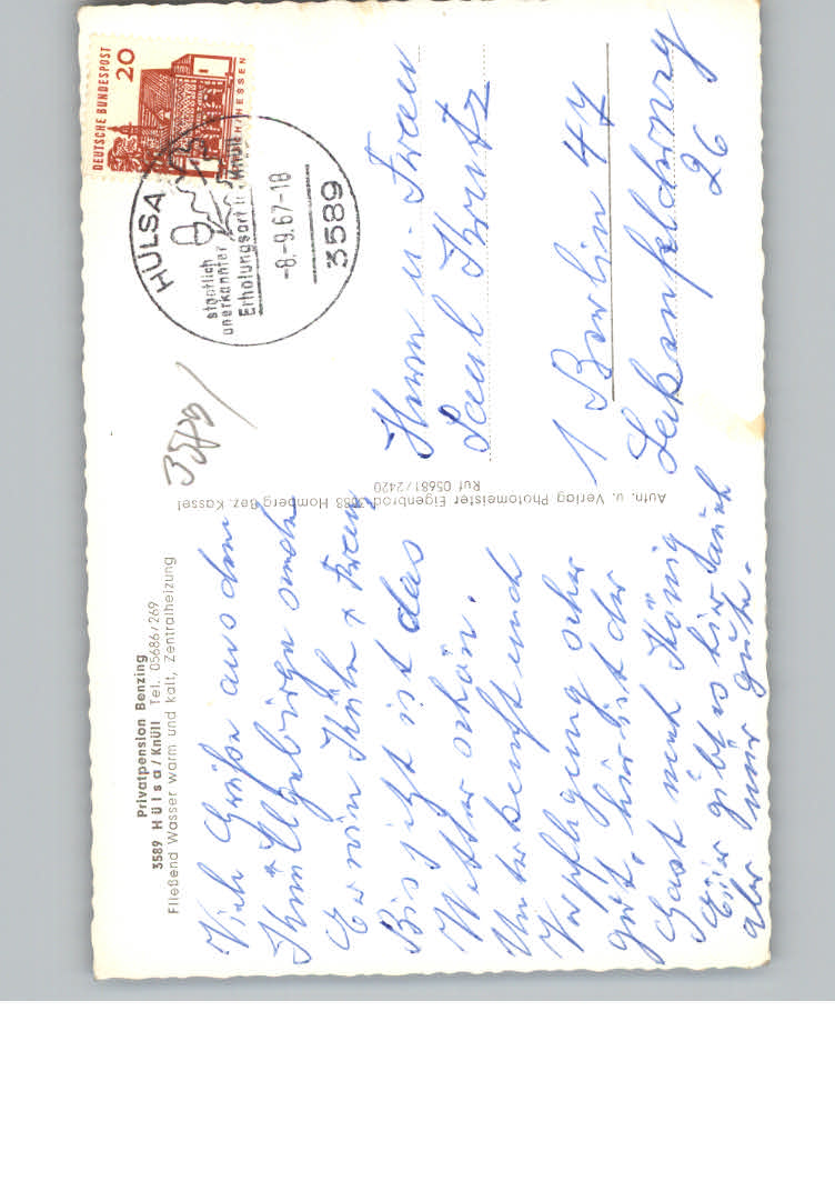 31130716 Huelsa Pension Benzing postalisch nicht gelaufen KatCode: 11110006634009