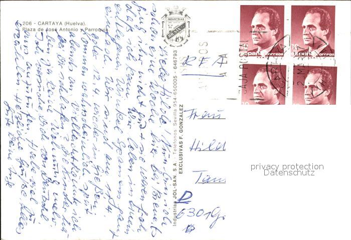 old postcard Huelva Cartaya Plaza Jose Antonio postalisch gelaufen Erhaltung siehe scans