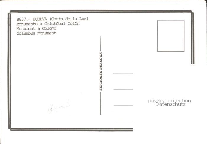 Huelva Fliegeraufnahme Monuemento a Cristobal Colon postalisch nicht gelaufen Erhaltung siehe scans