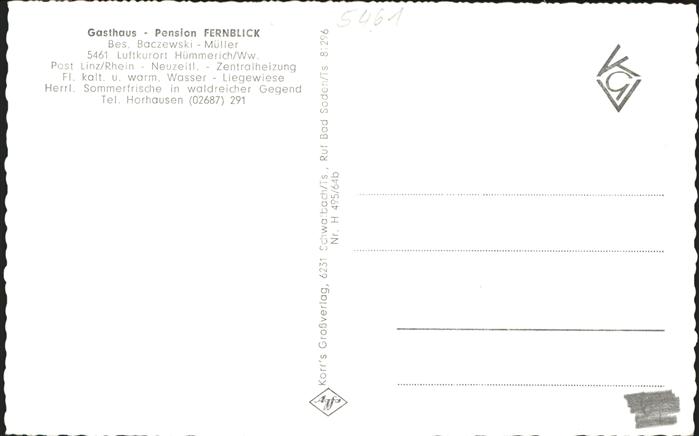 41310618 Huemmerich Westerwald Gasthaus Pension Fernblick Baczewski Mülle KatCode 11110007138030