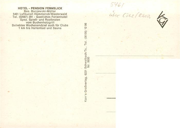 73891302 Huemmerich Westerwald Hotel Pension Fernblick postalisch nicht gelaufen Erhaltung siehe scans [WerneD78] KatCode: 11110007138030