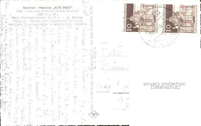 72200291 alte Postkarte Huemmerich Westerwald Waldweg postalisch gelaufen Erhaltung siehe scans KatCode: 11110007138030