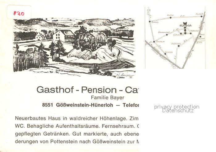 73158683 Huenerloh Goessweinstein Gasthof Pension Bayer Gastraeume Terrasse postalisch nicht gelaufen Erhaltung siehe scans [WerneD78] KatCode: 11110009474129