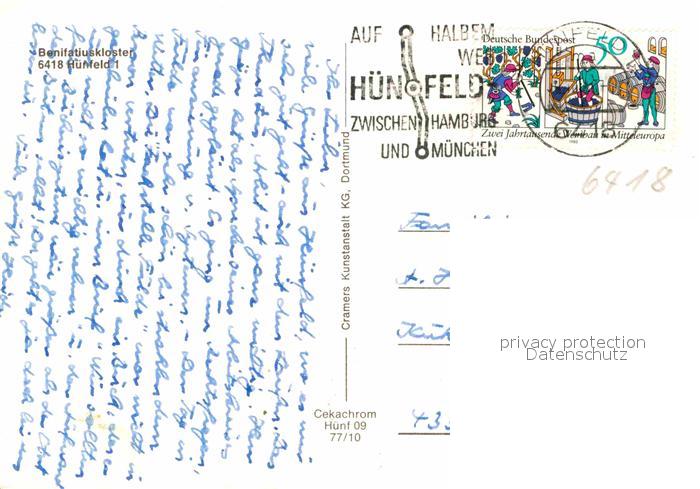 72853616 alte Postkarte Huenfeld Bonifatiuskloster postalisch gelaufen Erhaltung siehe scans [AndreD76] KatCode: 11110006631015