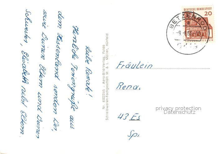 73671681 alte Postkarte Huenfeld Kirche Panorama Rathaus Schwimmbad Weiher postalisch gelaufen Erhaltung siehe scans [WerneD78] KatCode: 11110006631015