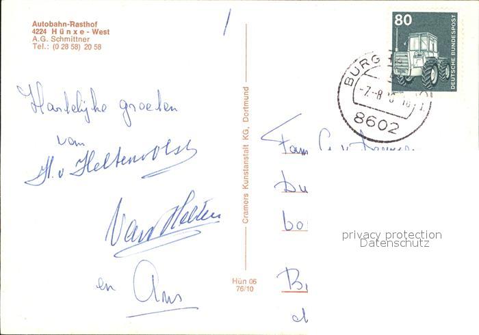 72481671 alte Postkarte Huenxe Fliegeraufnahme Autobahnrasthof postalisch gelaufen Erhaltung siehe scans KatCode: 11110005170016
