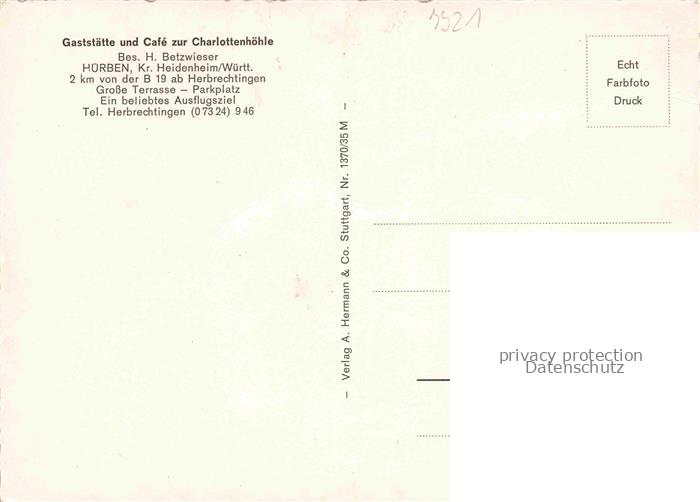 74041095 Huerben Giengen Brenz BW Ansicht mit Kirche Gaststaette Café zur Charlottenhoehle Landschaft Huerbental postalisch nicht gelaufen Erhaltung siehe scans [FriedD77] KatCode: 11110008135016
