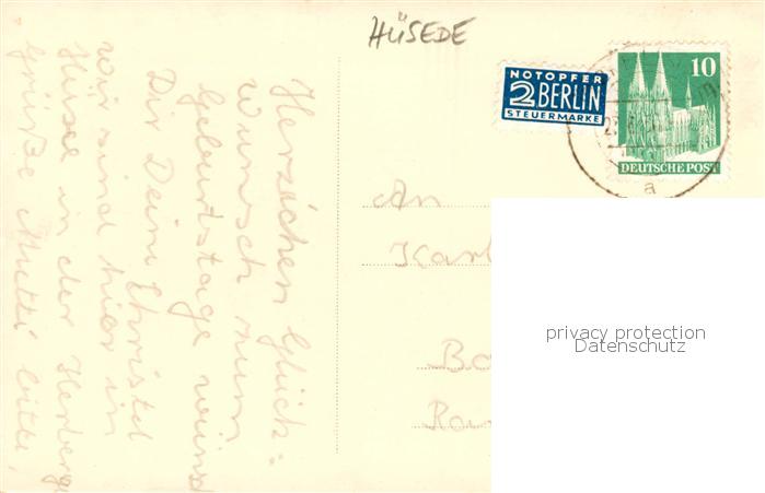 73831732 alte Postkarte Huesede Hotel postalisch gelaufen Erhaltung siehe scans [WerneD78] KatCode: 11110003459003