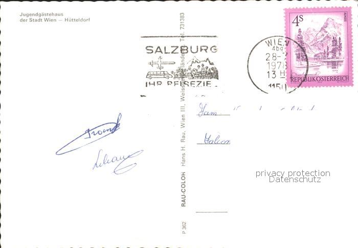 72224432 alte Postkarte Huetteldorf Jugendgaestehaus der Stadt Wien postalisch gelaufen Erhaltung siehe scans KatCode: 11390