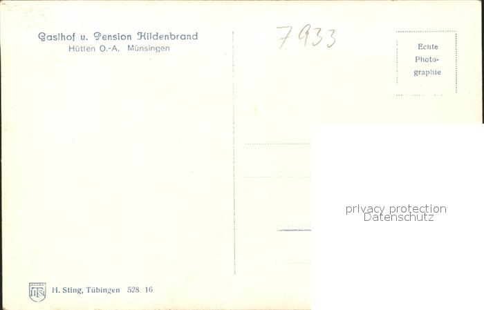 31702451 Huetten Schelklingen Schmiechtal Gasthof-Pension Hildenbrand postalisch nicht gelaufen Erhaltung siehe scans KatCode: 11110008425108