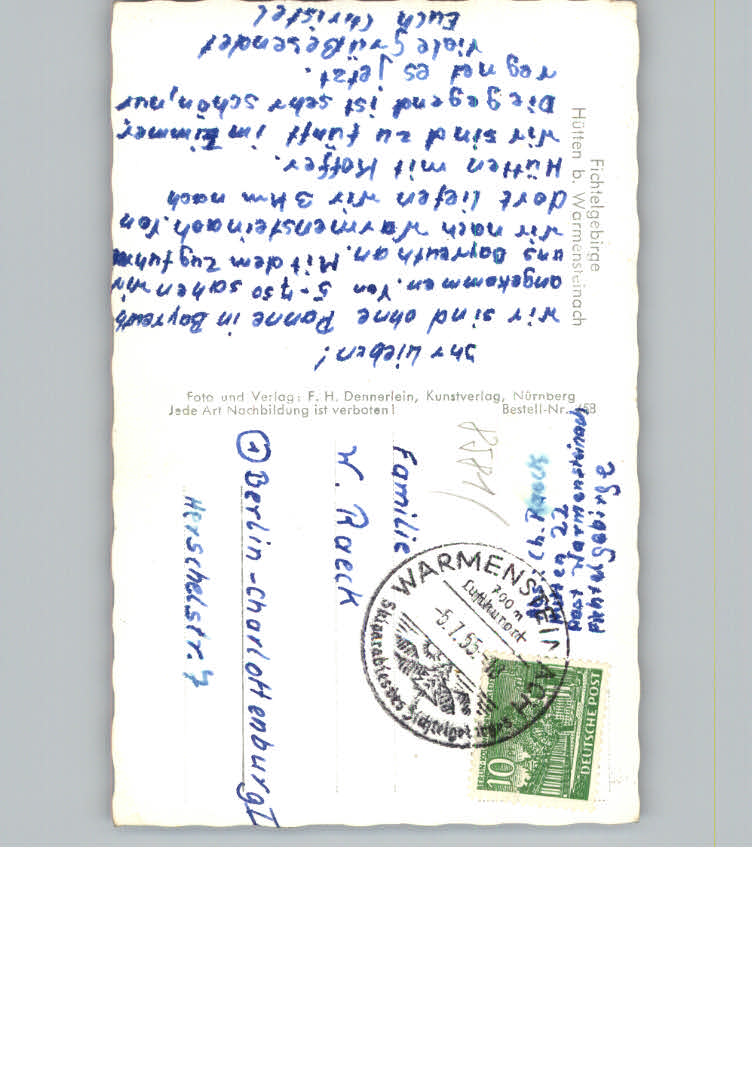 31163581 Huetten Warmensteinach Fichtelgebirge postalisch nicht gelaufen KatCode: 11110009472198