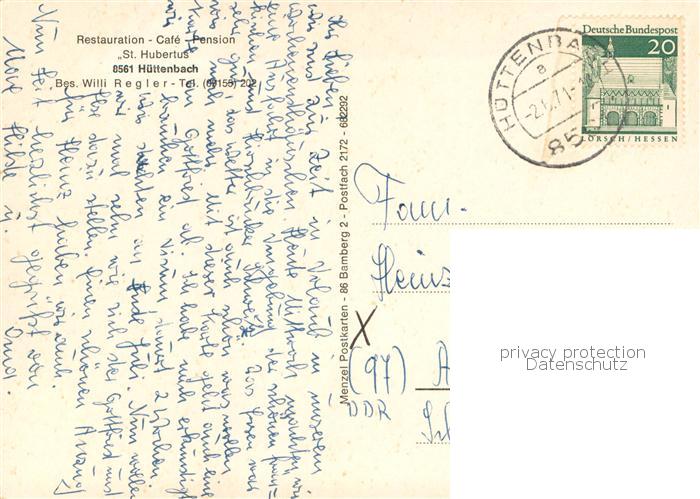 73766061 alte Postkarte Huettenbach Restauration Cafe Pension St Hubertus postalisch gelaufen Erhaltung siehe scans [WerneD78] KatCode: 11110009779131