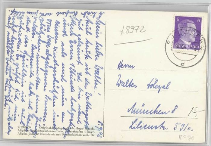 40224673 alte Postkarte Huettenberg ei Sonthofen postalisch gelaufen KatCode: