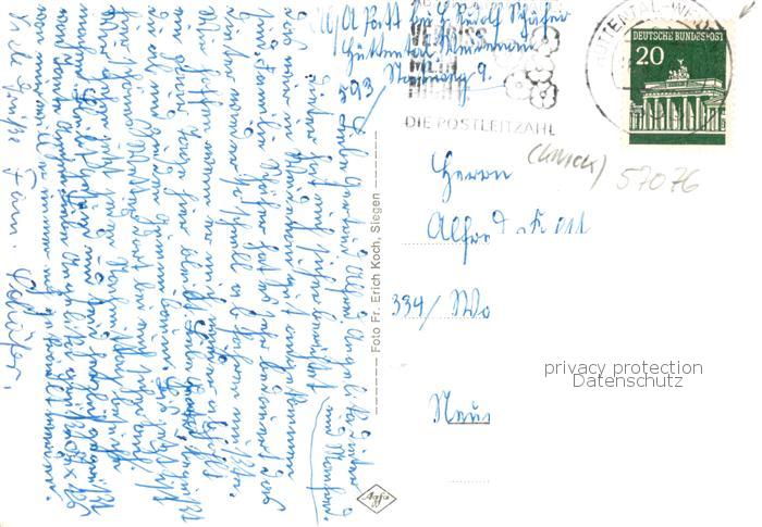 73857944 alte Postkarte Huettental Weidenau Blick ueber Stadtmitte und Bismarckplatz Strassenpartien Sparkassen Hochhaus postalisch gelaufen Erhaltung siehe scans [FriedD77] KatCode: 11110005970040