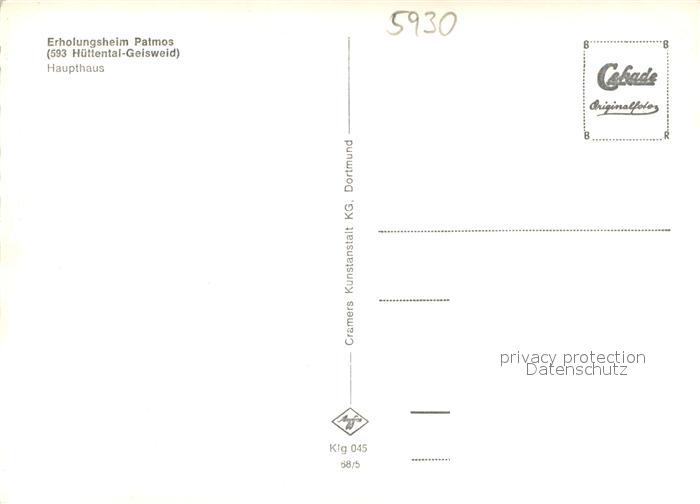 73710328 Huettental Weidenau Erholungsheim Patmos Haupthaus postalisch nicht gelaufen Erhaltung siehe scans [LiesaD40] KatCode: 11110005970040
