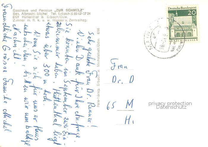 73642144 alte Postkarte Huettenthal Mossautal Gasthaus Pension Zur Schmelz Gastraeume postalisch gelaufen Erhaltung siehe scans [WerneD78] KatCode: 11110006437012
