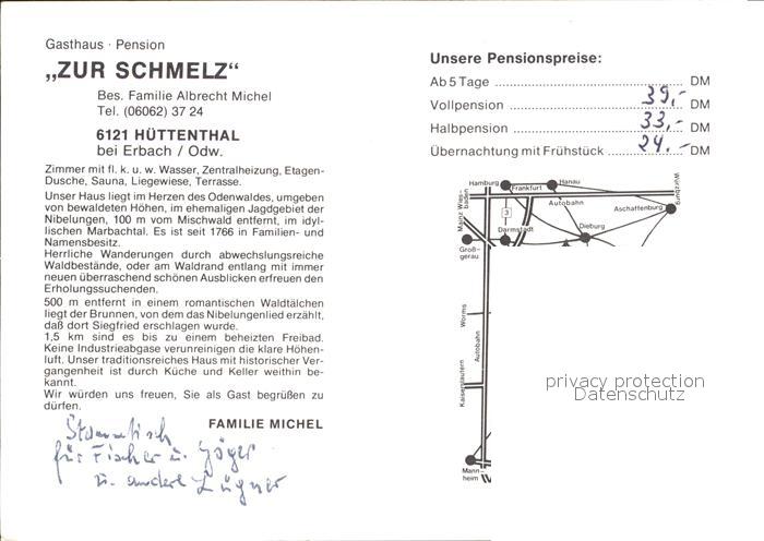 72503994 Huettenthal Mossautal Gasthaus Schmelz postalisch nicht gelaufen Werbekarte (keine Postkarte) Erhaltung siehe scans KatCode: 11110006437012