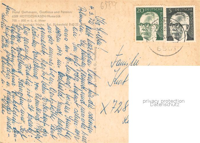 73743556 alte Postkarte Huettgeswasen Hotel Gethmann Gasthaus Pension postalisch gelaufen Fliegeraufnahme Erhaltung siehe scans [FriedD77] KatCode: 11110007134003