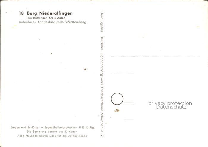 72033596 Huettlingen Wuerttemberg Burg Niederalfingen postalisch nicht gelaufen Erhaltung siehe scans KatCode: 11110008136033