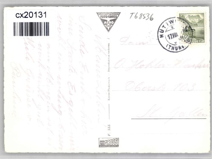 10738188 alte Postkarte Huettwilen urhaus Schloss Steinegg Fliegeraufnahme postalisch gelaufen KatCode: 11470200630650