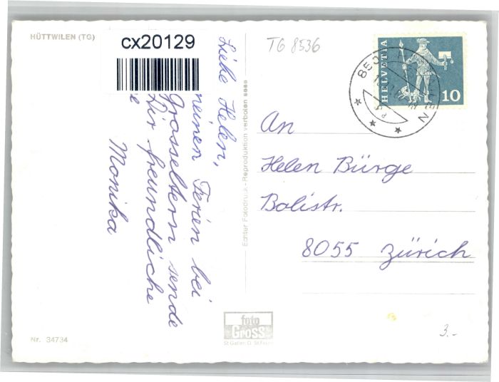 10738187 alte Postkarte Huettwilen postalisch gelaufen KatCode: 11470200630650