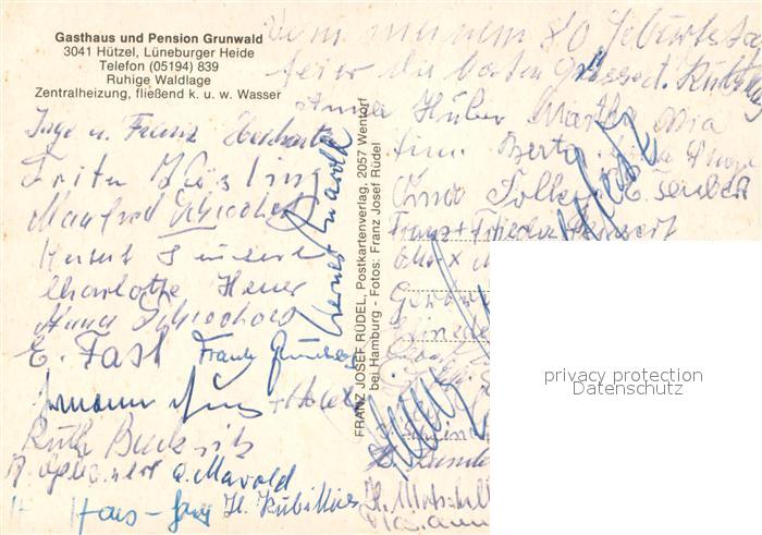73641115 Huetzel Gasthaus Pension Grunwald postalisch nicht gelaufen Erhaltung siehe scans [WerneD78] KatCode: 11110003358002