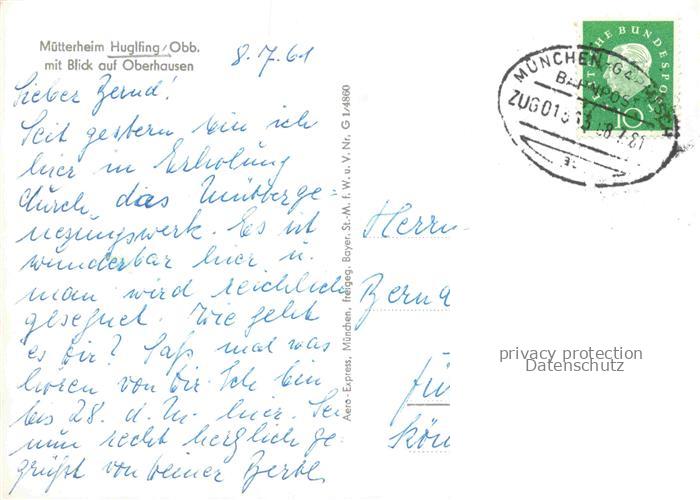 34146249 alte Postkarte Huglfing Oberbayern Bayern Muetterheim mit Blick auf Oberhausen Fliegeraufnahme postalisch gelaufen Bahnpost Erhaltung siehe scans [FriedD77] KatCode: 11110009190131