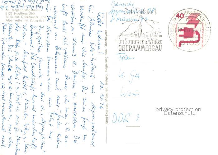 73646552 alte Postkarte Huglfing Panorama Blick auf Oberhauser und Alpenkette mit Zugspitze postalisch gelaufen Erhaltung siehe scans [FriedD77] KatCode: 11110009190131