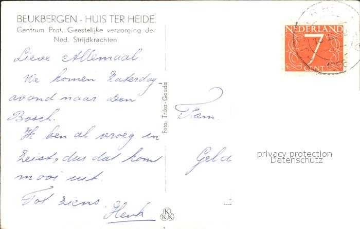alte Postkarte Huis ter Heide Beukbergen Centrum Geestelijke Strijdkrachten postalisch gelaufen Erhaltung siehe scans