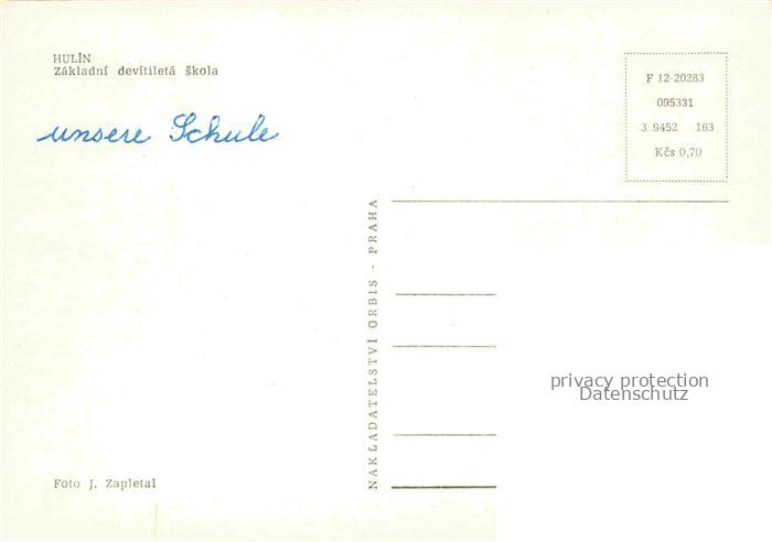 74022700 Hulin Hullein CZ Zakladni devitileta Skola postalisch nicht gelaufen Erhaltung siehe scans [WerneD78] KatCode: 11520