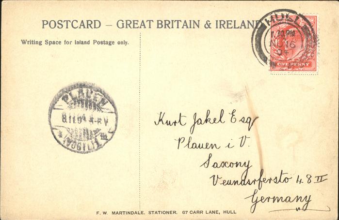 11094170 old postcard Hull Georgia Victoria Square postalisch gelaufen KatCode: 14140120000000