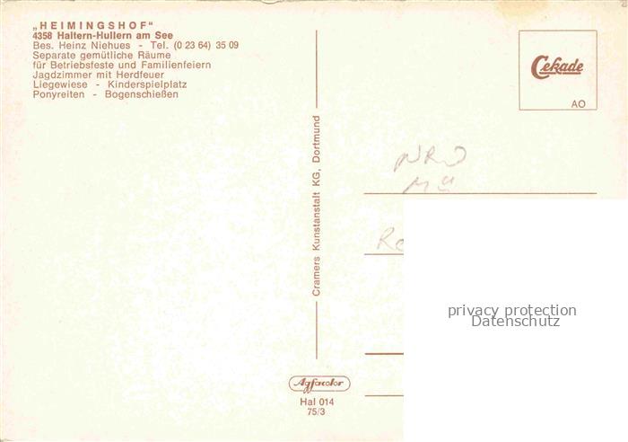 74037774 Hullern Haltern See Heimingshof Gastraum postalisch nicht gelaufen Erhaltung siehe scans [WerneD78] KatCode: 11110005562016