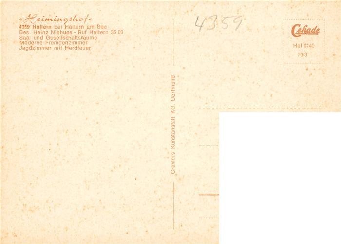 73912942 Hullern Haltern See Heimingshof Speiseraum Jagdzimmer Zum Stuebchen Strandbad postalisch nicht gelaufen Erhaltung siehe scans [WerneD78] Wern Katcode 11110005562016