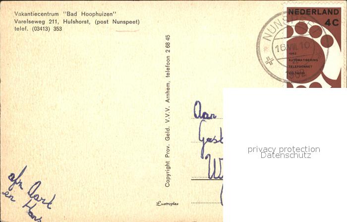 alte Postkarte Hulshorst Vakantiecentrum Bad Hoophuizen postalisch gelaufen