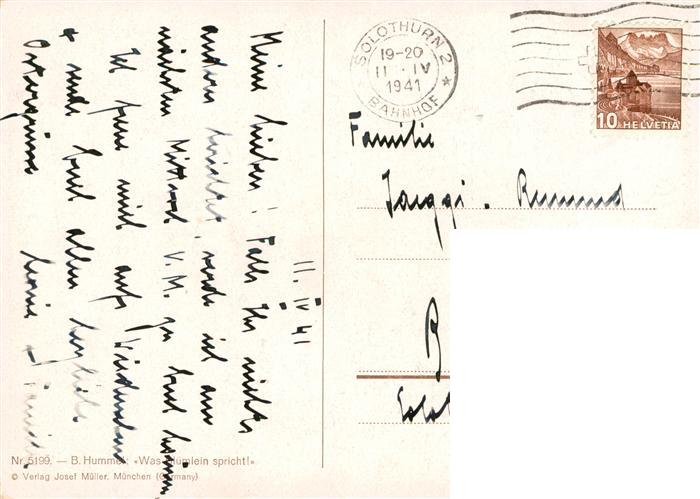 73925569 alte Postkarte Hummel Kuenstler-AK-Nr. 5199 postalisch gelaufen Erhaltung siehe scans [SanaeD92] KatCode: 22240000002800