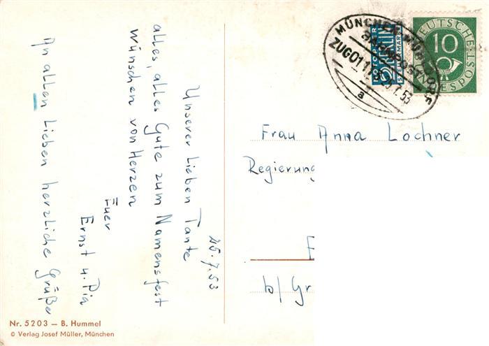 73942572 alte Postkarte Hummel Kuenstler-AK-Nr. 5203 Josef Mueller Kind Bluemen postalisch gelaufen Erhaltung siehe scans [IrynaD87] KatCode: 22240000002800
