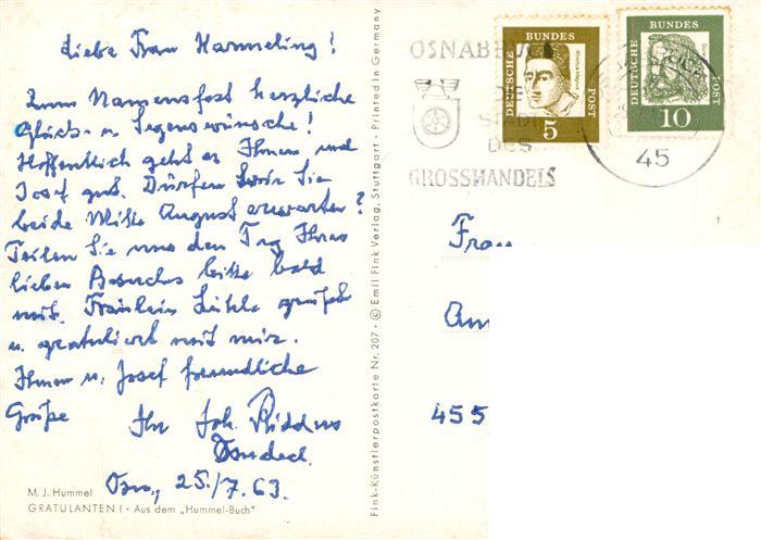 73942610 alte Postkarte Hummel Kuenstler-AK-Nr. Gratulanten Hummel-Buch postalisch gelaufen Erhaltung siehe scans [IrynaD87] KatCode: 22240000002800