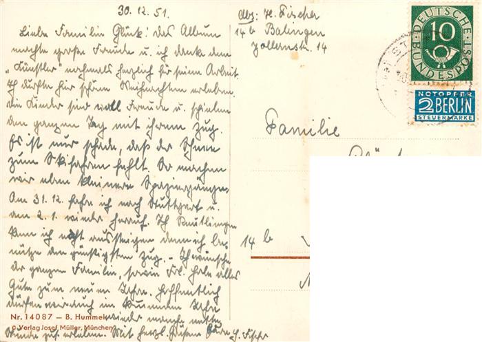 Hummel Kuenstler-AK-Nr. Nr.14087 Viel Glueck