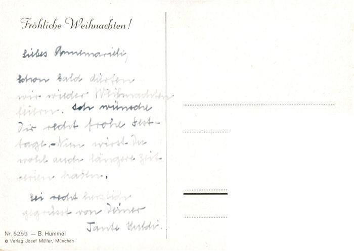 73929762 alte Postkarte Hummel Kuenstler-AK-Nr. Nr. 5259 Josef Mueller O Du Froehliche O du selige Engeln postalisch gelaufen Erhaltung siehe scans [IrynaD87] KatCode: 22240000002800