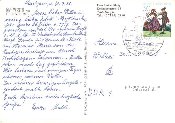 alte Postkarte Hummel Nr. 651 Er liebt mich postalisch gelaufen Erhaltung siehe scans